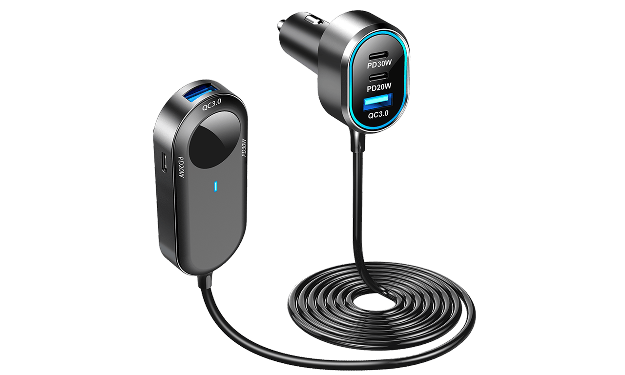 Ładowarka samochodowa WG 100W to centrum ładowania do Twojego auta. Wyposażona w sześć inteligentnych gniazd – cztery USB-C i dwa USB-A – pozwoli Ci zasilać jednocześnie do sześciu urządzeń. Dzięki temu zarówno Ty, jak i Twoi pasażerowie naładujecie swoje smartfony, tablety czy inne gadżety.