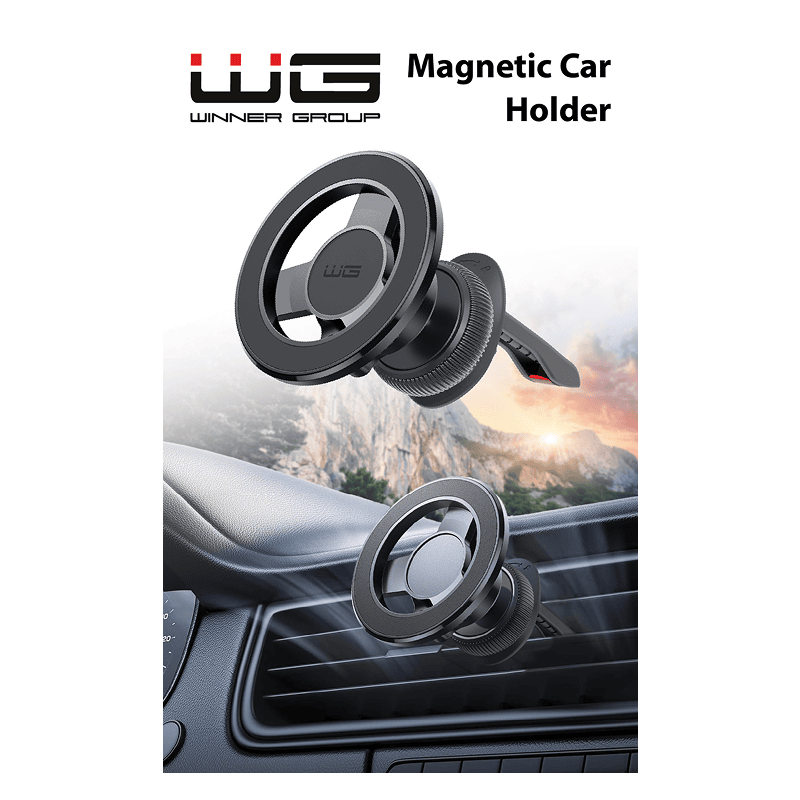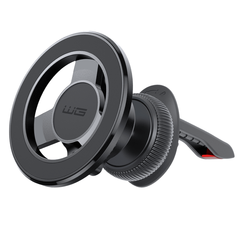 Uchwyt samochodowy magnetyczny WG44 do kratki wentylacyjnej czarny front lewy skos