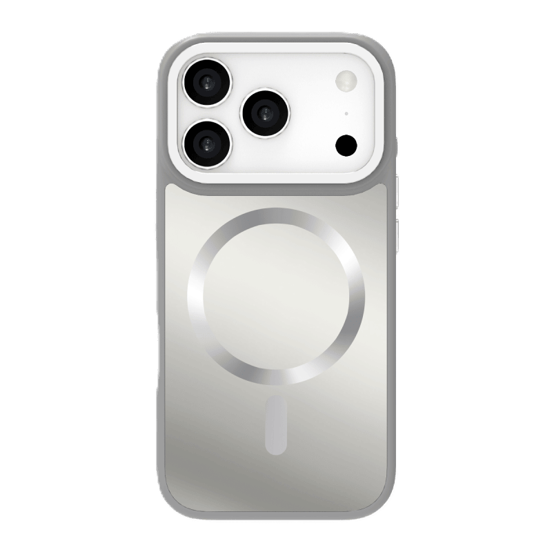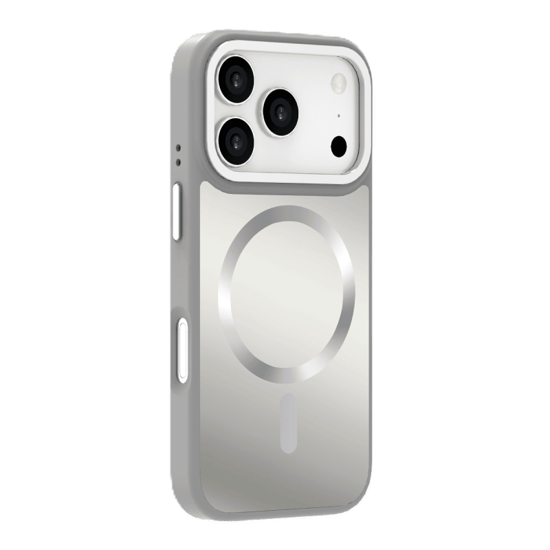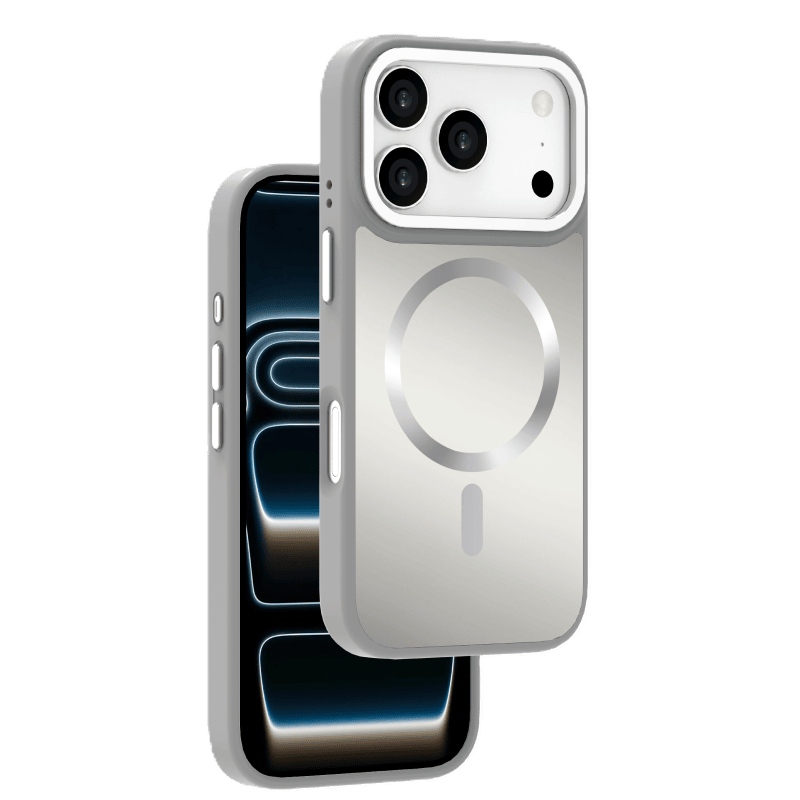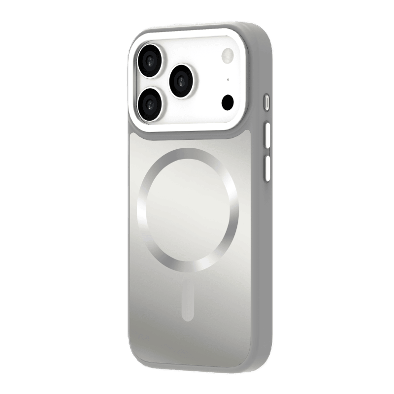 Etui WG Shining Elegance Magnet iPhone 17 Pro srebrne przód i tył prawy skos