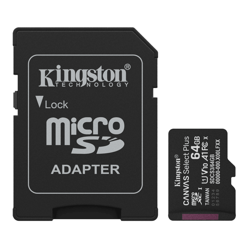 Kingston Karta pamięci microSD 64GB Canvas Select+ G3 150MB/s Adapter czarna front