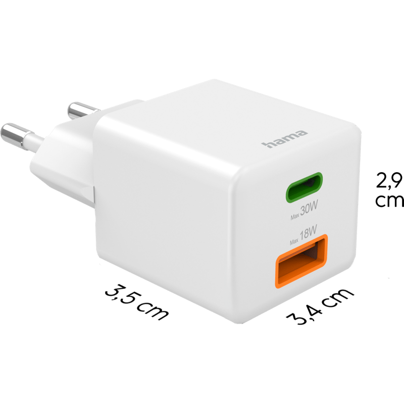 Hama Ładowarka sieciowa Mini 30W PD/QC (1X USB-C, 1X USB-A)