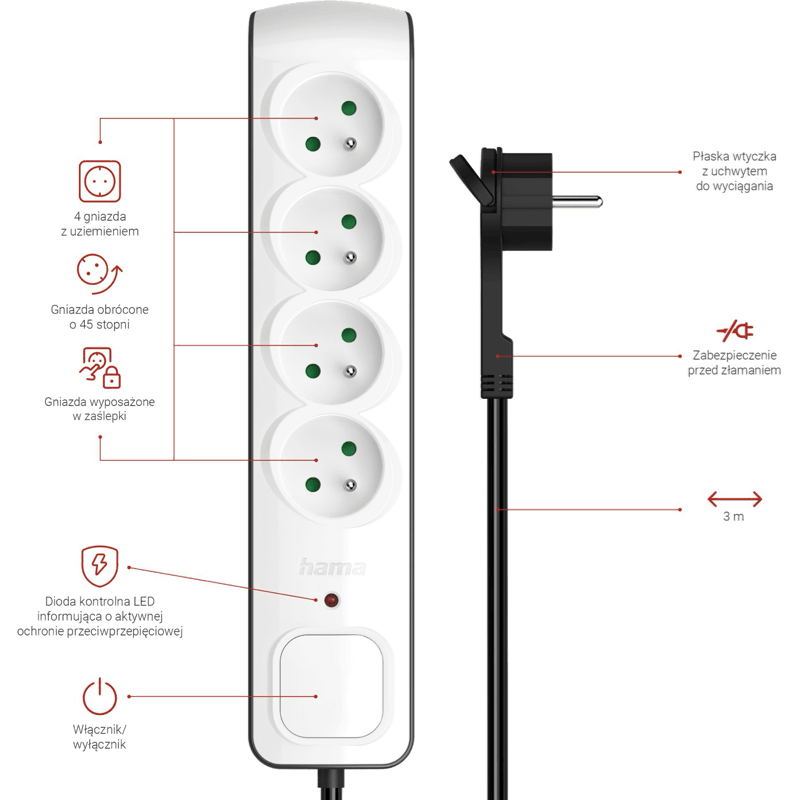 Listwa przeciwprzepięciowa "Premium" 4 gniazda 3m